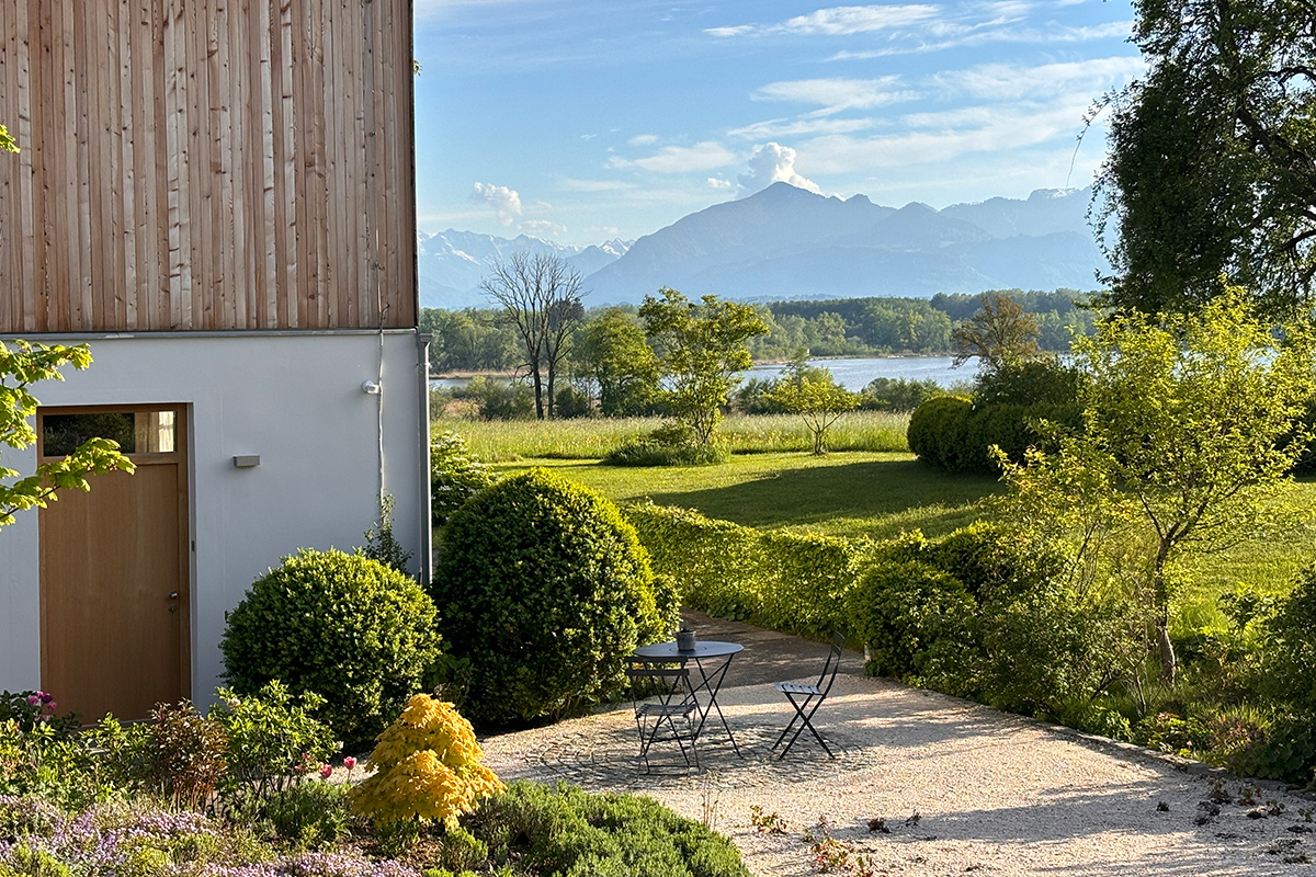 Es gibt viele schöne Plätze zum Verweilen und geniessen. Vom Anwesen aus kann man durch ein Tor direkt auf den Chiemsee Radrundweg fahren.